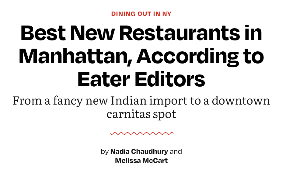 Named among the Best New Restaurants By Eater
